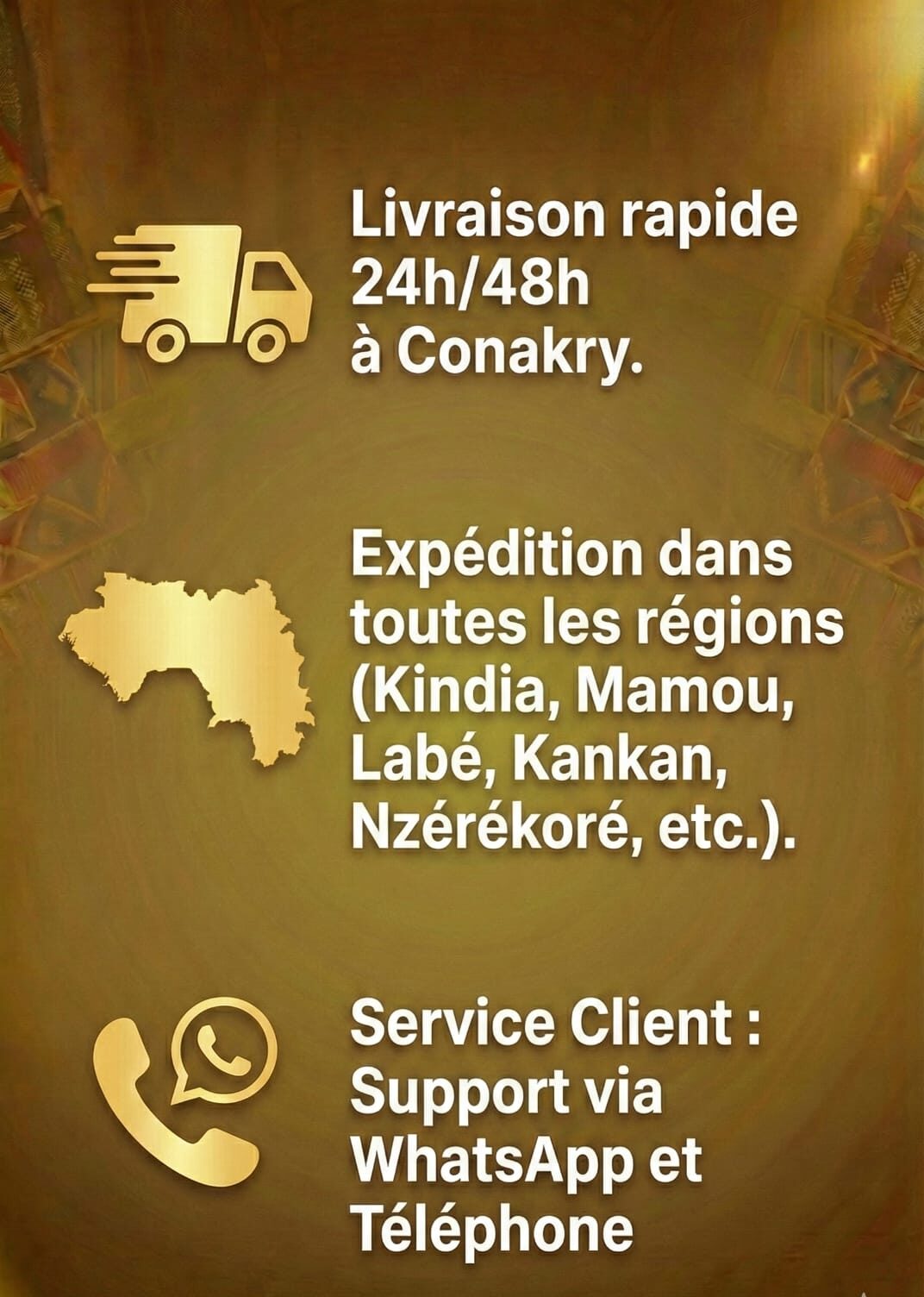 Livraison partout en Guinée (Conakry et Intérieur)