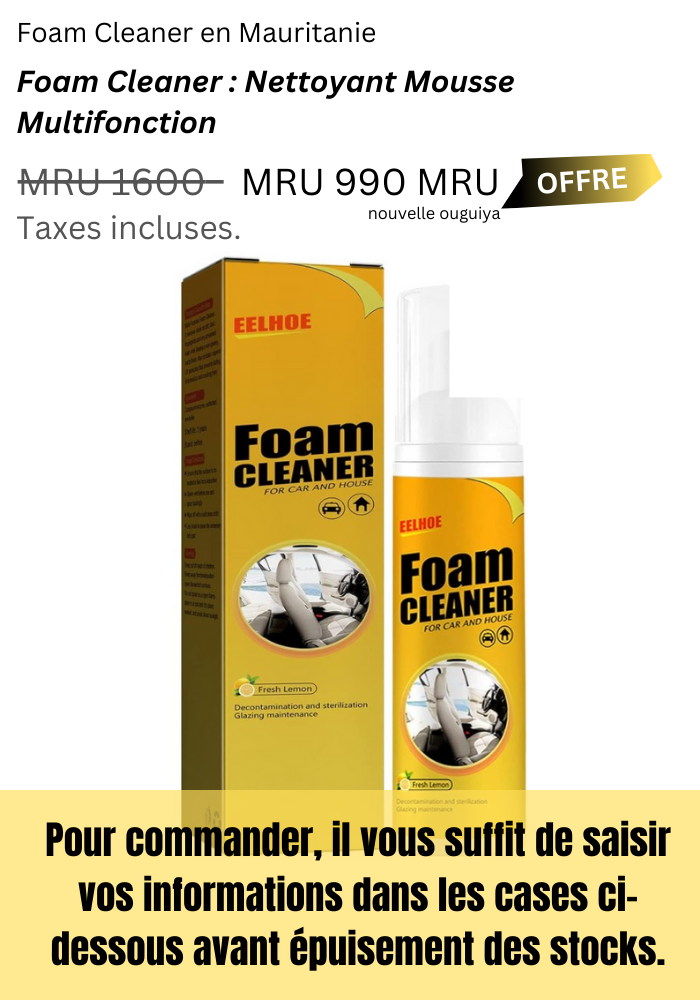 Ne laissez plus les taches, la poussière et les mauvaises odeurs vous envahir. Commandez dès aujourd’hui Foam Cleaner et offrez à votre véhicule et à votre foyer un coup de neuf instantané, sans effort.