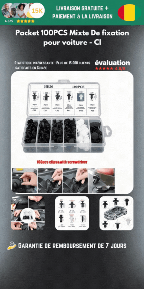 Ce pack de 100pcs de fixation vous devez nécessairement l'avoir dans votre voiture !!