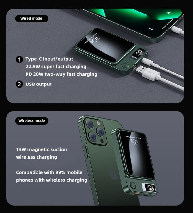 Découvrez le Power Bank Magnétique Sans Fil Ultra-thin, la batterie externe révolutionnaire qui associe la puissance de la charge rapide et le confort du sans-fil. Fini les câbles encombrants : profitez d’une expérience de recharge fluide, simple et ultra-performante, où que vous soyez.