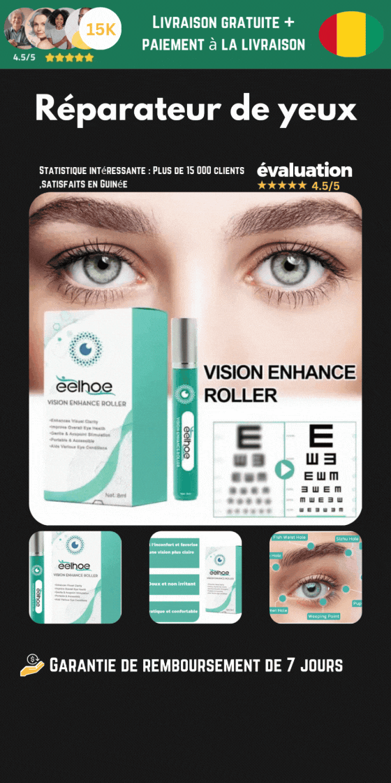 Ma vision était mon plus grand atout en tant que contrôleur dans notre entrepôt. Mais dernièrement, ça m’a laissé tomber et j’étais désespéré. J’ai tout essayé pour m’en occuper, mais rien ne semblait fonctionner. C’est à ce moment-là que mon formidable collègue m’a suggéré ce rouleau d’amélioration de la vision J’étais sceptique au début, mais laissez-moi vous dire qu’il est vraiment efficace depuis la première utilisation. Après seulement quelques semaines d’utilisation, ma vision a commencé à s’améliorer et elle est maintenant presque revenue à la normale. Je ne pourrai jamais assez remercier mon collègue d’avoir recommandé ce rouleau. Cela m’a sauvé la vie ! » -Michael McDuffi