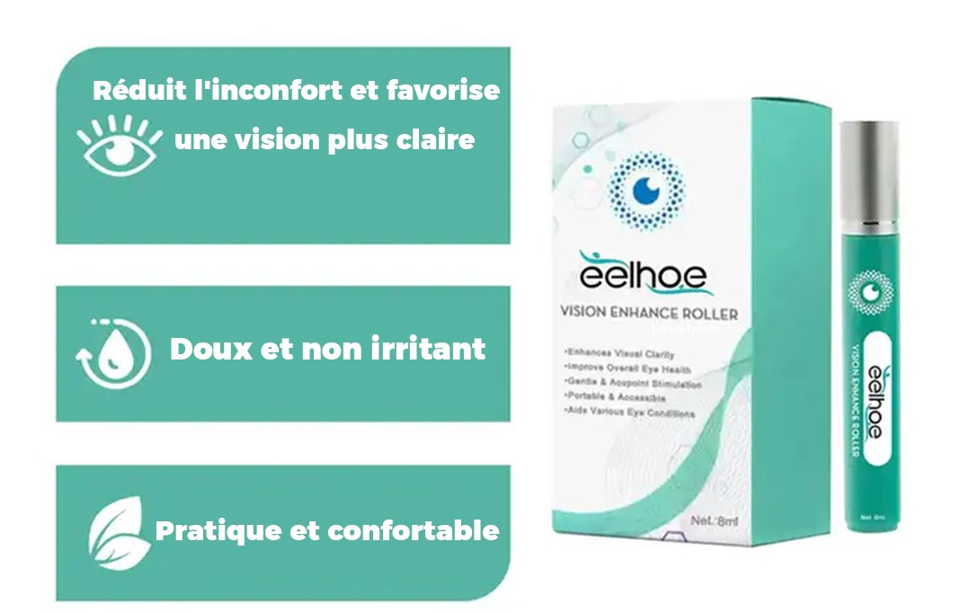 Mais ce n’est pas tout ! En utilisant régulièrement ce produit, vous pouvez améliorer votre vue sans avoir besoin de lunettes ou de lentilles de contact. Le Vision Enhance Eye Roller stimule la production de larmes naturelles et détend les muscles oculaires, améliorant ainsi votre vision globale et sa clarté.